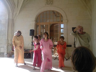 La compagnie a présenté aux festivaliers du Château d'Oiron (79 - Rencontres régionales des artistes amateurs) un extrait du dernier spectacle "Je t'aime, etc. !" le dimanche 7 juin 2009. Voici quelques clichés de la représentation sous les galeries extérieures du Château.